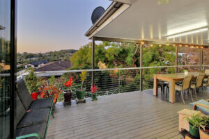 Covered rear deck with city outlook