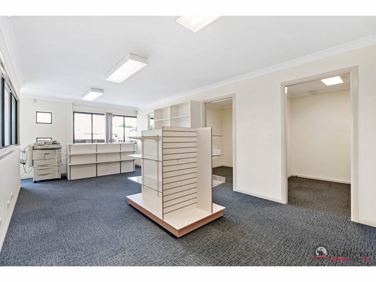 Shop (54m2) plus upstairs offices (50m2) plus 4 private car spaces.