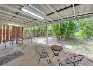 Massive fully fenced, level backyard with garden shed.